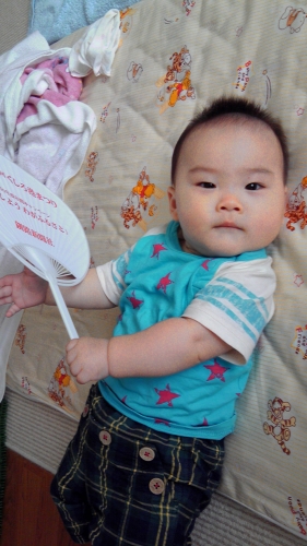 うちわに目が無い我が家のぼっちゃん 最初は舐めてばっかりだったけど、そのうち扇げるようになりました!!