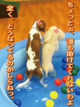 /21/aloedog/68/78/g/o0200004010610583180gif"> ↑ご協力お願いシマス↑いつもいつもたくさんのご訪問、アリガトウゴザイマスお風呂が好きな妹アヒルっていうか、プールを風呂と勘違いするイタイ妹やけどな…そして何かに気付く…その目線の先に見えたものは…この固まった2匹…みんなに写真を撮られまくり…がしかし…妹アヒルは、↓顔でか↓の件もあって、このプールに入りたいらしい…ってことで、タオルの用意がなかったのでお隣の100円ローソンにタオルを買いに行ったMommy…で↓小顔というより…プードルらしい顔やわすいません…で、乾いた後、Mommyのヒザで休んでいると…ブレーメンか!!!( ̄ ̄ Д  ̄ ̄;)うちの男共はロクなもんじゃないってことに確信を覚えたMommyでした 続きを見る ['close']