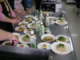 富士食品工業の料理教室に行ってきました 富士食品工業はオイスターソースなどを作っているメーカーさんです 料理教室が初めてな上、1人での参加だったのでドキドキでした 30人位いたでしょうか ブログに今日の料理教室の様子を載せることが条件のためか 始まる前からカメラで撮っている人が多く雰囲気に圧倒されました 受付に置いてあるオイスターソースや食材などを撮っている方が多かったです この料理教室は3回目の開催だそうで、2回目一緒だった人や他の モニターなどで親しくなったりと知り合い同士の方が多かったです 橋本先生が教えてくださいました 先生のプロフィールがまた面白いですhttp//wwwoishispooncom/profilehtm (社)日本フードアナリスト協会ファンサイト応援中 先生の実演が始まった瞬間、ほとんどの方がカメラにとっています アキバのカメラ小僧状態でビックリです 先生も最初はビックリされていましたブログをみているとⅰ phoneからの 投稿が多く携帯でみんな撮るのかなって思っていたらほとんどの人が デジカメでした(コンパクトではなく、中には本格的なカメラの人も) 最初は驚いていた先生も、カメラにきれいに取れるようにわざわざお鍋や 食材の角度を持ち上げて変えたりしてくれていました 撮るのを逃した方のためにもう一度実演をしてくれたりと大変優しかったです 始まる前は1時間も実演?って思ったけどあっという間でした 先生の実演だけでも何十枚も撮っていた方もいて、アメブロをみただけでも レシピを詳しく載せている方が何人もいて、yahooやgooにも載っていたので、 今回私は省こうと思います 作ったメニューは 「白菜とベーコンの重ね蒸し煮」 オイスターソース 極、がらあじ 「豚挽肉と生姜の混ぜご飯」 オイスターソース 極、豆板醤 「海老とねぎのオイスターマヨ炒め」 オイスターソース 極 です ※富士食品工業の商品で使用したものです このあといよいよ実習です 食器や鍋などを自分達で出すのですがある場所がわからない 前回来ている方が率先して動いてくださいます 作る時も皆さん段取りが良く、次に何をしていいのかがわかっています 1人だったらこれやって、次はあれとわかりますが、複数の方が 色々なことを同時進行していると頭が真っ白で少しパニックに なってしまいました完全な足手まといです 次にもし参加できるようなことがあったら料理の腕を磨いて もっと動けるようになりたいです 先生が作った分です デザートは先生からのプレゼントです ちなみに私たち(というかほぼ私以外の方たち)がつくった分です 食べるお皿も自分たちで出すのでグループごとに違って面白かったです 皆さんも写真を撮っています ケーキは分量どおりにやればいいだけだから料理の中で一番簡単 だという人が多いですが、なぜかうまく作れません 次はケーキも一緒に作る機会があるといいなって思います 今までは調味料は1流メーカーのものを、と決めていましたが、(PBを買って 失敗したことがあるため)これ、本当にすごく美味しいです よく簡単な料理でも料理人が、作るとやっぱり何が違うかわからないけど一味 違うなーっていう時があるけど、そんな感じです えびも大きくねぎもしっかりとしていて食材ももちろん良かったのですが、 ソースのおかげで、味が1ランク違います ソースの味がいい感じで甘かったり、いい仕事をしてくれています 先生の作ってくれたケーキなもちろん、自分たちで作った料理も大変 美味しかったです 一緒に作った方たちも大変いい方たちで、楽しい時間が過ごせました 今回のレシピは、どれも簡単なもので家でもすぐに実践できるものでした 誰にでも出来るのにすごく簡単で美味しいのでまた家で作ってみようと 思います また、 和風のだしの時は 片栗粉と水の割合は 1:1 中華のだしの時は 片栗粉と水の割合は 1:15 となんていうことも教えてもらいました 帰ってから富士食品工業のホームページを見たらビックリです 他にも甜麺醤 、トウガラシ 等も扱っていて、メニューは中華だけでは ありません和食も洋食も出来ます ミートソースにもオイスターソースが大活躍です 詳しくはホームページでhttp//wwwfujifoodscojp/ 最後にお土産にいただきました 続きを見る ['close']