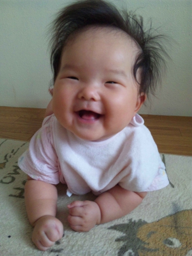 おうちでコロンコロン転がって遊んでる時が一番良い笑顔を見せてくれるなっちゃん 最近は声を出して笑うようになりました