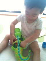 先日記事にしたモニプラさん (モニター応募サイト) 登録して初めて応募した Achatte(アチャッテ)さんの 「サッシー(Sassy)アリゲーターシェイプス」 当選しちゃったよγ(▽´ )ツヾ( `▽)ゞ Sassyはカラフルでかわいいし お風呂やプールで遊べるオモチャは持ってなかったから ほんとにうれしい しっかりダンボールで届きました おぉ!!色使いがかわいいね さっそくワニさんを狙うあんよが写ってる笑 最近ぬいぐるみにご飯をあげるおままごとが好きなキイチ お口からパクッと食べてくれるワニさん 大ヒットです!! 背中から器用に取り出して、、 またあげて、、とエンドレス 「ちょっとママに貸して」と取ろうとしたら この顔!!笑 ごめんなさい お風呂でも遊んだよ ワニさんのしっぽがフックみたいにかけられるから ちゃんと水切れできて便利♪ 今朝もお風呂から持ってきて遊んでたよ笑 キー坊が気に入ってくれてママもウレシイ アチャッテさんのサイトはコチラ↓ オシャレでかわいいアイテムがたくさんあるから プレゼントにもいいかも Achatte★子育て応援ショップファンサイト応援中 続きを見る