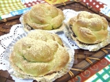 2011年6月のメニューは ★抹茶あんロール 抹茶生地にあんこををはさんで、こうしてああして で、こんな可愛いお花の形に 出来上がりには“きな粉”をかけて出来上がり♪ とってもおもしろい成型です ★胚芽チーズ 食物繊維たっぷりの小麦胚芽を使って、生地の中にはたっぷりのチーズを練りこんでいます 成型はハサミを使って仕 続きを見る ['close']