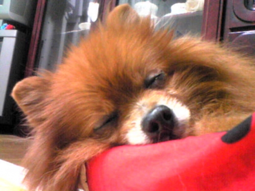 10月産まれのポメラニアン、♂ です リラックスしてるのかしてないのか 毎日癒されています♪