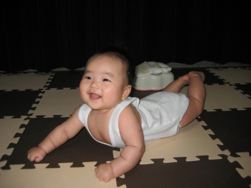 寝返りした後のゴキゲン!スマイル♪ 『パパー!ママー!見て見てー』って言ってるのかな?(笑)