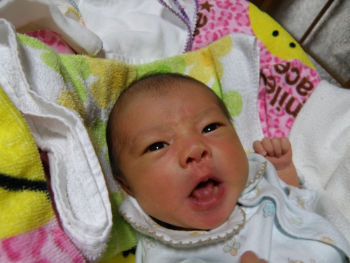 生後1ヶ月の息子がんばって大きくなるぞ!オー!!と意気込んでいるかのようやんちゃでもいい、たくましく大きくなぁれ!
