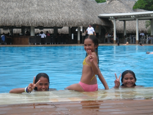 タヒチのプールでの1枚です言葉は通じなくても、笑顔でカメラを向けると、笑顔でピースを返してくれました笑顔は世界共通です