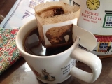 私事ですが飲み物には結構こだわりがあり 日本茶、紅茶にもこだわりますが コーヒーにも豆選びに結構こだわりがあります(笑) (勿論家で挽きます) って?何の告白なんでしょうか私(笑) 仕事中にはもっぱら珈琲が飲みたくなりますが そこまでこだわるわけには行かない為 通勤途中やお昼休みに 珈琲ショップに立ち寄って 買って行ったりします でも本当は その場で入れられる簡易のドリップコーヒーでも 美味しい物があれば その方が良いのよね〜と常々思っておりまして 色々なメーカーの物を試しています 正直こういうタイプの物には限界を感じていて (すみません上から目線的な書き方で) まあ、インスタントよりは良いかな?くらいにしか 考えていませんでしたが 今回ちょっと考えが変わりました 思い込みはいけないな〜と反省 オアシス珈琲さんの『きれいなカップインコーヒー』 ちょっと写真が上手く撮れていませんでしたが 上の部分の編み目を広げてお湯を注いで バッグを振って抽出です 私は濃いめが好きなので 漬けっぱなしで飲みましたが お好みに合わせて濃さも調節できます 紐が長いので タンブラーでも充分に引き上げられるので便利 雑味の無い美味しい珈琲が手軽に飲めるので おすすめ きれいなコーヒーってネーミング気になりますよね? これは輸入されて来るコーヒー豆が 原産地で脱穀の際に果肉のカスとかほこりが付着したままなので このまま焙煎すると雑味の元になるんですって これらをジェット水流で洗い流す(美味しさや香りは落とさずに) という特許を取得されているそうです クリアーに味わえる 『きれいなコーヒー』大満足の美味しさでした ドリップタイプも香りが良くて美味しかったです 「きれいなコーヒー」オアシス珈琲ファンサイト参加中 続きを見る
