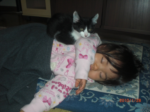娘がお昼寝をしだすと、退屈になって隣にすわってみたり、寄り添ってみたり・・・ 最終的に上が落ち着いたようで(笑)娘も気にせず爆睡zzz・・・ しかし、何でにゃんこって座ると手(前足)を内側に折りたたむんでしょうね 前に無理やりなかに折りたたんだ手をまっすぐにしてみたら、数秒後そぉっと元に戻してたのにはうけました(^_^) …続きを見る ['close']