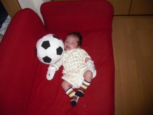 サッカーの国、南米出身の旦那そして、キーパーをしていた旦那息子もキーパーに決まってる!!とパシャリ三トンがいい具合に、キーパーさを醸し出しているマラドーナには負けないぞ!!!