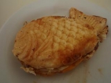 先日、TV”エチカの鏡”で取り上げられていた”モニプラ”なるものに登録してみましたそれで早速当選?した”【たいエッグ】テリヤキ×ハンバーグ”を今日食べてみました別名:おかず鯛焼きとも言うらしくて、一見普通の鯛焼きに見えますが間にはハンバーグとキャベツが挟まれていて、裏側部分は鯛焼き生地ではなく卵になっていますまず一番始めに思ったのは、「たべにくぃ」持ち帰りにしたのも悪かったのか、紙袋で厳重に包まれすぎてその中ではテリヤキソースが鯛焼き全体にまとわりついちゃっていて、いざ食べようと思ってもどう食べ始めていいものかハンバーグは鯛焼きの形いっぱいに入っていてボリューム感はいっぱいでした私はチィと2人でランチに分けあって食べましたが、十分な量でしたおやつというよりはランチなどの軽食向け鯛焼きですね一口茶屋さん、久しぶりに食べたのですが鯛焼きの皮ってこんなかんじだったかなぁと自腹でクリームの鯛焼きも食べたのですが、ちょっと固いような一口茶屋ファンサイト応援中