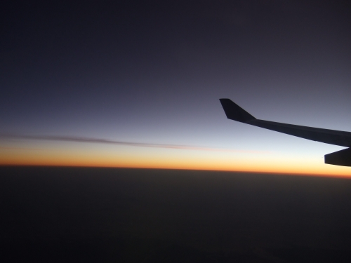 オーストラリアへ夜出発し、ふと目が覚めたときに外を見ると朝焼けが 思わずカメラを出して撮った一枚です