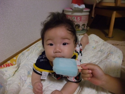 お姉ちゃんに食べさせられました! 離乳食はおかゆの前にアイスでした