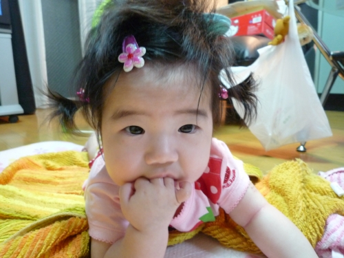 今月6ヶ月になるにこちゃん!初めて二つ結びにしてみましたママ胸キュン!そして、おしゃぶりはなぜか中指&薬指!笑 よくばりちゃん!そしてそして、なんとも言えないこのつぶらな瞳!笑!!!ほんとかわい そして最後に親ばかな私あは