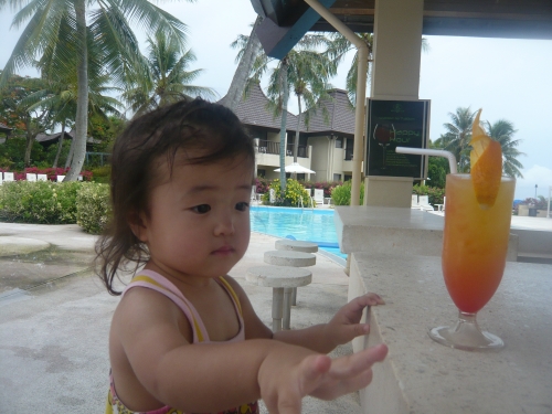 今年の夏に家族で初めてサイパンへ海外旅行へ行った時の 写真です ウェルカムドリンクを飲みながら、海を眺めてる1ショット! とっても楽しい旅行でした