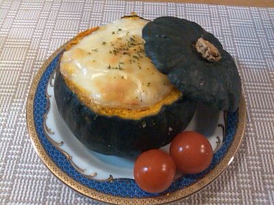 【材料】坊っちゃんかぼちゃ、マカロニ、ベーコン、玉ねぎ、小麦粉、牛乳、塩、こしょう、チーズ、オリーブオイル かぼちゃに丸ごとラップしてレンジにかけ柔らかくする 蓋を作り、種の部分をくり抜く 下茹でしたマカロニ、ベーコン、玉ねぎを炒める 牛乳と小麦粉でとろみをつける塩こしょうで軽く味付け かぼちゃに炒めたものを入れ、チーズを乗せ、オーブンで焼いて完成 …続きを見る ['close']