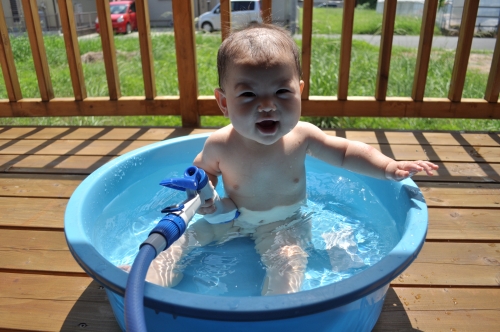 暑い日にはプールが一番! 来年は、おっきいプールを買うからね♪