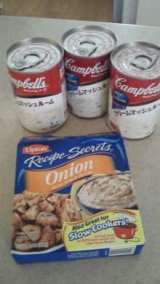 輸入店で売っているリプトンのコンソメの素(1袋)と、キャンベルスープシリーズのクリームマッシュルームの缶(今回は2つ)を、半カップの水と混ぜ合わせて混ぜますこのソースを巨大な牛肩ロース全体に塗って、アルミホイルをかけて170度のオーブンで3時間焼くだけです♪♪ あとはご飯と一緒に食べるだけ★★ …続きを見る ['close']