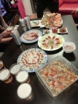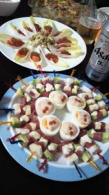 Thu, October 13, 2011 ★娘バースデーパーティー★ テーマ:ブログ ボジョレー目前!ワインと食べたいパン、どんな風に食べているかも教えて下さい ←参加中18時にパーティースタート かんぱーーーい★ 料理はキングがいたので、要領よく進められてすんなり準備ができました♪ 今日はワインを沢山用意したので、ワインに合わせて食べるの大好きなフランスパンを、薄くカットして、 オーブンで焼いてカリカリにしたら、上にサーモンディップやトマトとバジルに味付けしたのもチキンの上にゴルゴンゾーらを乗せたもののど、数種類のブリスケッタにしてみました♪ 定番ですが、ワインにはブリスケッタが1番合うと思います♪♪ で他にもメイン料理はなくワインに合うおつみまみがほとんどですが ハクちゃんおめでとーーーーーう 今回は9人tの方々が来てくださいました♪ 途中、やっぱり仕事の話になりましたがキングの巧みな話術によって話題は「男と女の友情な成立するか?」「男と女の… 続きを見る ['close']