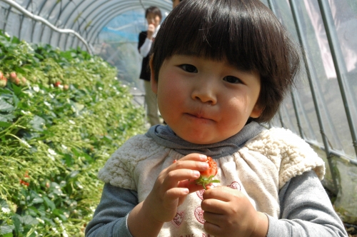 家族で 静岡県 久能山に イチゴ狩りに行ったときの一枚です いちごを 食べて 幸せそうな 顔 毎年 いきたいですよ