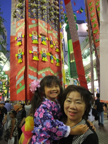 今年の仙台七夕まつりにて 娘も母もとてもいい笑顔で、こちらも笑顔になりました