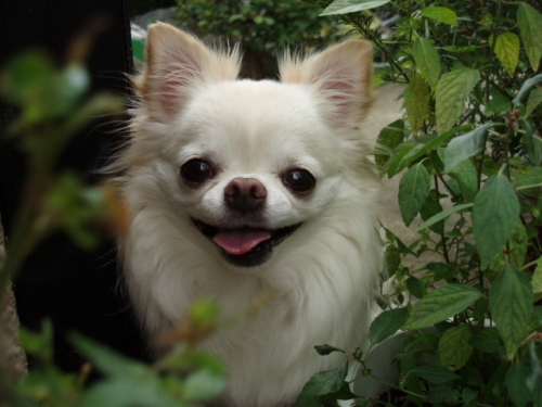 待ちきれないのか門まで急いで出てきて、植木と植木の間から笑顔で出迎えてくれます この笑顔に疲れも吹き飛びます