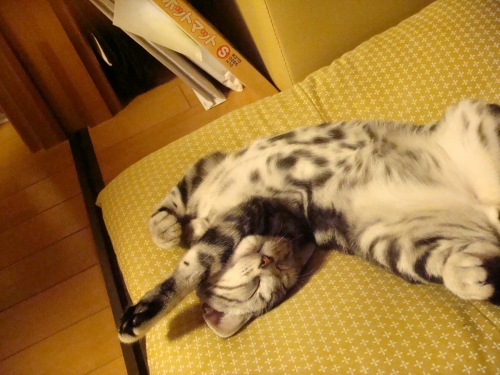 こんな面白いポーズとって寝てます(≧▽≦)♪ 我が家の箱入り息子です!
