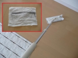 一昨日、ポストになにやら、封筒が 中には、このような物が 前回、モニター募集していた、テラモトの、エコ水拭きシート(仮)です まだ、未発売なので、名前もついていないみたい 初、当選です 本当に、当たるんですねぇ嬉しかった 早速、開いて、よく見てみました 拡大すると、こんな感じ 薄い部分が、クイックルワイパーに装着する部分です 早速、自宅のクイックルワイパーへ取りつけてみました 私の自宅のクイックルワイパーのメーカーは 「花王 クイックルワイパー」 問題なく、装着できましたよ 付けて早々 おはる登場 目新しい物が来ると、どこからともなく現れる… 掃除中なんて、掃除機にくっついてきたり、ホント大変ですよね んで、クイックルワイパーを奪われ 壊されたらいけないので、ひとまず取り外し 猫にちょっかい猫(モモ)も、ノリノリで、じゃれてるし… ほんと、作業が進まない何をするにも、寝てる時が勝負ですよ っと、話がそれてしまいましたが 今朝、おはるが寝てる隙に、エコ水拭きシート使ってみました はじめに、普通のクイックルワイパーで、埃や、チリを取り除きました 猫がいるから、1日たつと、こんなに汚い ほんと、汚いでしょ食事中の人、ごめんね いよいよ、エコシートの出番 今回は、水ぶきをしたかったので、水で濡らして、よく絞って フキフキ ここで、すこし、問題が 家の場合、猫が3匹いるので、歩くたびに猫毛がハラハラと落ちるんです 初めに、クイックルワイパーでチリや埃を取ったのですが こんな感じ 見えるかしら??? 水ぶきだと、チリがまとまって床に張り付く感じになります 水で、濡れているので、まとまってるから、後でティッシュで拭きとりましたが ちゃんと、掃除機しなきゃだめだね 使用する前は、十分な、掃除が必要ですね だけど、床の汚れは、こんな感じに綺麗になりました ここ猫のご飯が置いてある所 食べこぼしが丁度あって、解りやすいと思ってやってみました 端っこなので、横に5回行ったり来たりと、拭いてみました ホント、綺麗になった これは、満足です そして、1階、2階の全てを拭き終わったのですが、その間に、3回ほど 水洗いしました なんの問題もありませんでした なんでも30回は、繰り返し洗って使えるみたい3回くらいじゃ全然 大丈夫ですね 拭き終わった時の状態は、こんな感じです 少ないチリなら、一緒に巻き込まれて、汚れも取れる、一石二鳥ですね ただ、ここでもう一つ問題が この写真だと、ちょっと解りずらいかな 私、モップ感覚で、力いっぱい、ゴシゴシしたので、モップの向こう側 に、ものすごい力がかかるらしく、ずれてしまうんです もう少し、クイックルワイパーに装着する部分を固めにすると良いのかなぁ? 2度ほど、ゴシゴシしてる時に、装着しなおしました まぁ、私の力がすごすぎなのかもですね しっかし、このエコシート、すごく良いですよ おはるが、寝ている間に、いつも、ぞうきんでゴシゴシしてたんですが、 時間短縮だし、楽だし 私は、大満足な商品でした 今度は、から拭きで使ってみます そうそう、この商品、いくらくらいだったら買うだろう まだ、価格も決まっていないらしく 1枚、150円だったらいいかなぁぁ だけど、10枚だと1500円かぁ ちょっと手を出しづらいかな?だけど、1枚で30回は使えるし 主婦はまず、金額を見ちゃうから(笑) 5枚で498円とかワンコインってことでいいかも そうそう、この商品名決まってなくて、モニターの方に、 名前を募集 ん 「クイックモッピー」(笑) ではでは、もう少し使ってみて、壊れた時までに、何回 使ったか、レビューしてみます 綺麗な時のドアップ 壊れるまで、おせわになります テラモトファンサイトファンサイト応援中 株式会社テラモト 続きを見る ['close']