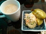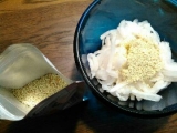 "nofollow">玉露園さんのうめ昆布茶が届きましたさっそくうめ昆布茶をいただきますこんな風に顆粒になっていますお湯を注ぐと良い香りが漂います近所の和菓子屋さんでお団子2本買って、ほっこり昆布茶を楽しみましたきなこあんとうぐいすあんのあまいお団子と昆布茶の塩味がちょうど良い感じです細切りにして塩漬けして置いた大根とマヨネーズとうめ昆布茶をつかって小鉢を作りましたマヨネーズと昆布茶は適量入れて混ぜるだけほんのりうめ風味の大根サラダになりました良い箸休めになりました 続きを見る ['close']