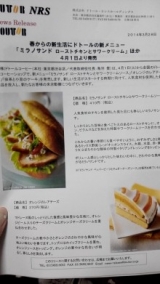 いつも、ブログがご無沙汰になってしまう ブログに書く材料はてんこ盛りなのだが 少しずつ書いていきましょう ってことで、まずは先日行ったドトール試食会 4月新発売のミラノサンドとケーキを試食 10人程度のモニターだったのだけど 23人のモニターに1人ドトールの方がついて アットホームな形での試食会 ドトールコーヒーショップ赤坂1丁目店にて ドトールさんでは初めての試みだったみたい 少人数制だと、ちょっとした疑問や質問も すぐに答えてくれるし、この形式は、とっても良かった またサービスもよくって まずは、カフェのお店らしくブレンドコーヒーが出てきた後 好きな飲み物も選べて、至れり尽くせり状態 私は、「いちごのホワイトラテ」を頂きました うん、これ、イチゴの風味がよくって美味しいわっ! ミラノサンドは、限定の「ローストチキンンとサワークリーム」 サワークリームとピクルスが効いていて、さっぱりしていて、酸味もあって だんだん暖かくなる季節には、もってこいのメニューだわ ケーキは、「オレンジのレアチーズ」 マドレーヌ風の生地でしっとりしていて レアチーズも濃厚すぎず オレンジピールがアクセントになっていて とってもさわやかなケーキ あとケーキはもう1品 「抹茶と小豆のケーキ」 こちら、ココア味のスポンジと抹茶のクリームが意外とあっていて 練乳のクリームもほどよく甘くってね 上の山型になった抹茶クリームが面白い形だわ どちらも甘すぎないから、ぺろりと完食です 今まで、セットもののドリンクが、決められたメニューからしか選べなかったけど 4月から、どのドリンクでもセットにできるようになったとのこと 選ぶ楽しさもできていいわ 試食をしながら、「ドトール」さんについてのお勉強 ドトールの一番最初は、「カフェ コロラド」さんだったのだそう 知らなかったわ 「エクセルシオール」は、ドトールさんのグループなのは知ってたけど 「コロラド」もそうだったとは ここのクラブハウスサンドが好きなのよね 帰りにお土産で、タンブラー等々を頂き 早速次の日にタンブラーを使ったけど 他のカフェみたいに タンブラー持っていったら、少し割引してくれると嬉しいんだけどなぁーーー 結構、「ドトール」は駅の近くにあるので よく利用するカフェなので、今後もますます利用度が高くなりそうよ ドトールコーヒーファンサイトファンサイト参加中 ドトールコーヒーショップ 宝くじ購入代行お買い物代行は、東京ぐるっと代行サービスへ 続きを見る ['close']