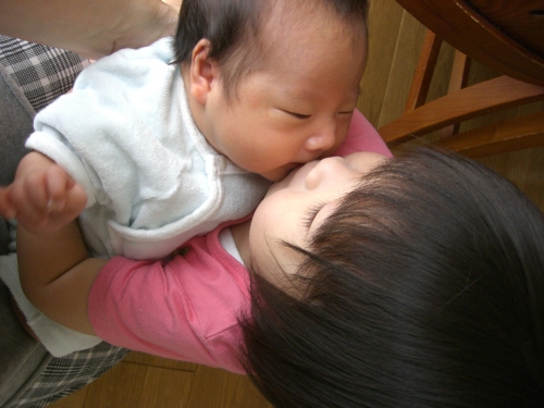 我が家の5人目の赤ちゃん♪ お姉ちゃんになったことが嬉しくて思わずチュウ!!