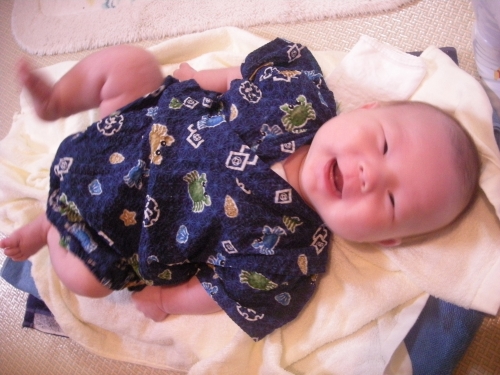 おまつり初体験でご機嫌♪ これから大好きなお風呂でーす!