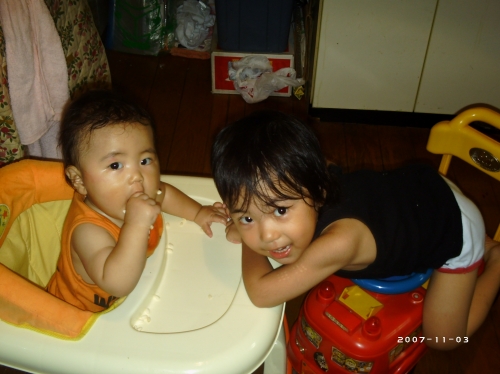 ちびちゃんの離乳食も進んでお兄ちゃんと一緒におやつたいむ♪