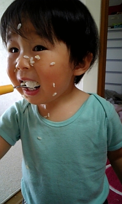 食欲旺盛な息子くん 一人で上手にモリモリ食べて お顔が凄いことになってます