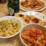 ダイエットパスタなんですね1食当たりエネルギー 245kcalと 272kcal、なるほどたまにはこんな冷食でラクしてみました子どもと3人で、頂いた4食分とチ