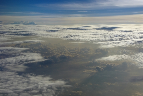 雲に覆われた地上を離れ 上空から空を見上げる するとさらに雲が 空はほんとに高いだなぁと知る瞬間ですね 地上に射す事の無い 優しい光が一つ下の雲に降り注いでいます