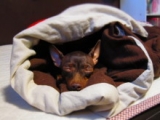 ミニピンは毛が短いから余計寒いか一人で寝てる時はこんな感じ