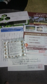 モニプラで、「キングアガリクス100【タブレットタイプ】30粒(3日分)」が当選しました! 商品:「キングアガリクス100【タブレットタイプ】」30粒(3日分) なんとなく元気が出ない、朝がツラい、、、 疲れがとれない、体がダルくて重い、、、 最近、お肌の調子が、、、 毎年、冬に体調が、、、 そんなときに1袋を水か、ぬるま湯と一緒にお飲み下さい(粉薬と同じように) キノコ系のサプリメントで最も有名な「アガリクス」 なかでも栽培が非常に難しく世界的にも貴重な、ブラジル産自然露地栽培アガリクス=キングアガリクスに添加物を一切加えず、アガリクス100%で製品化しました *商品について詳しくはこちらをご覧ください↓ http / /www kanf jp http//moniplajp/bl_rd/iid7885588284d6b6cdf40c72/m4cadb48d2a79e/k1/s0/ 粉末のキングアガリスクは、何度か試したけれど 今回タブレットを初めて試してみました(^^) 私的には粉末の方が飲みやすかったかなぁ(^^; まぁ、キノコの味が気にならないので、そう感じたのかもしれません(^^) 効果の程ですが ん粉末の方が、疲れが取れたような気がしました(_) 今回は、飲んでいても効果がわかりませんでしたね(;>_ 続きを見る ['close']