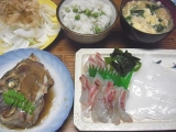 昨日の晩ご飯は、和風の晩ご飯です食材費は0円とは言わないけど、かなりそれに近い 鯛の兜煮(1匹分のアラが150円!)鯛の刺身とイカの刺身(
