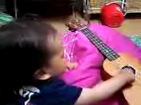 夫が自分の為に購入したウクレレですが ムスコが興味津々♪ 意外といい音出してます(笑)
