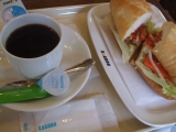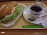 コーヒーの香りにつられてドトールへ行ってきました 今回の期間限定新商品は、エビツナ半熟タマゴのサンドですトマトソースで和えたツナがハーブと混ざ