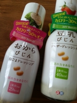 リニューアルしたSOY Beautyシリーズの「おからびじん 白ごまドレッシング」と「豆乳びじん シーザードレッシング」シーザー(旧)1食分50kcal→(新)40kcal白ごまは滑らかさがアップして、ドロドロからトロトロに(^O^)リニューアル前のドレッシングも以前、お試しさせて頂きましたどちらもヘルシーでおいしいのですが、とくに白ごまがお気に入りでリピしてしまったほど(^O^)それがリニューアルされていたなんて(゚д゚)!!もともとカロリー低めだったシーザードレッシングが更に低く白ごまは滑らかさがアップしたようですが、私はドロドロしてた前のものも好きです♪カロリーが気になるシーザーサラダも、豆乳びじん シーザードレッシングなら気にならない!カロリーが更に低くなっても、濃厚さは変わらず♪カロリー気になるけど、おいしく食べたい方におすすめです(^O^)正田醤油のファンサイトファンサイト参加中Android携帯からの投稿 続きを見る ['close']