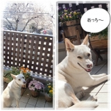 先日 散歩の途中でノーリードの子犬が畑で走ってて傍で おばーちゃんが”ちび!ちびーー!!”って呼んでいるけど 遊びに夢中でいっこうに捕まらない様子 首輪が外れちゃったのですか?と声をかけたら そうですと言われたので私が持っていたオヤツとひめをオトリにして 何とか身柄を確保です(笑)お住まい近くを 毎日ひめとの散歩で通るので 今日は覗いてみましたよいましたよ!! あのちびちゃんがーー!!昨年10月生まれ生後半年の男のミックスちゃんです黒柴ちゃんが入っているようですねぇワンコにも人にも懐こいです半年経つと 性格が ちゃんと出ますねぇこの時期のひめは散歩で私の影に隠れちゃうくらい ビビリさんでしたよちびちゃん 物怖じしないで撫でて!って近寄ってきますちびちゃんは ひめに何されても平気ですでも ひめはちびちゃんが しつこくまとわり付くと ガウーーーだってどっちが年上なんだかねぇ ちびちゃん どちらかというと ママのが気になっていたのかなぁもっと触って!!って感じでしたぁ可愛いねぇ ちびちゃん また来るねぇ♪数日の風の強さで 桜もだいぶ散り 日差しも強く テラスでは暑いくらいですひめの顔 暑くて酔っ払いみたいになってるよ(笑)お庭で遊んでいたらひめの鼻の上に 桜の花びらが はらり♪ぷっぷっ!! とっても可愛いよ