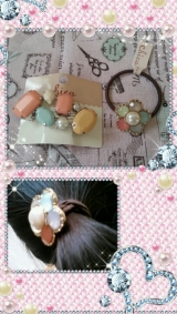 この前、3coinsでヘア小物を買いました似たような色合いこういう感じが好きです重くならずにまとまる♪と評判の大島椿ヘアクリームがあれば梅雨の湿気も怖くない