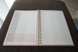 シャチハタさんから、スケジュール帳のモニターに選んでいただきました 働く女性のための文房具「opini」というブランドです シャチハタさんに手帳があるなんて、知らなかったですね届いたのは2種類A5サイズとB6サイズ 仕事用とプライベート用に2冊とも使おうかと思っていたけど、 やはりこの重さを2冊持ち歩くのはキツイので どちらか1冊を選ぼうと思って、本気で悩みました 大きい方はこれ しっかりしたカバーで丈夫そう 時間帯ごとに記入できるタイプです 赤い紐についているタグもかわいい 営業の頃だったら、毎日何件も訪問してたから こっちのタイプの方が使いやすかっただろうけど、 今は営業ではないので、ここまでは必要なくて、 むしろメモ欄がいっぱいある方がいいなあと思って、 もう1つの小さい方を使うことにしました きれいな色 こっちはリングノートタイプで、広がらないようにゴムバンド付きです これは、左側が週間スケジュールで、右側が全部メモ欄 毎日のやることリストや、ミーティングのメモが書けるので、こっちが良さそう 左ページの左端にグレーがかった部分がありますが、 ここはBOSSの予定を書けるスペースだそうです そしてとても細かいことだけど、右上に当月と次月のカレンダーが書いてあって、 わざわざ他のページを見なくても、来週とか次月の曜日が分かります 赤い紐はないけど、すぐに「今日」を見つけられるクリップ付き さらに、ラミネートシールというものがついていて、 よく見る資料を貼っておける 営業の頃だったら間違いなく見積表を貼りまくっていただろうけど 今は見積は必要ないので、時刻表を貼りました その他、「体調管理表」とか路線図とか、 働く女性にうれしいことだらけの、 随所にこだわりがちりばめられた1冊でした 2012年1月~2013年3月まであって、年度末まで使えるのも とてもうれしいです すでにこんなに書き込んでしまった このスケジュール帳とともに、明日からの2012年度も頑張っていきたいと思います ありがとうございました シヤチハタファンサイトファンサイト参加中 続きを見る ['close']