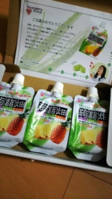 こんな時間にこんばんは昨日は幼稚園の終業式でした^^そんでもって年長さんは、今日はお泊り保育!明日の朝早く迎えに行かないといけないっていうね(^▽^;)みんなどんな様子だったのか気になります♪さてさて、先日マンナンライフの大粒アロエin クラッシュタイプの蒟蒻畑がモニターで当たったので届いたその日に食べちゃいました夏らしいパイナップル味♥3個なので、もちろん子ども3人に食べられちょっと味見させてもらったら、そんなに酸っぱさはなく、パイナップルの渋い感じもなくて、さわやかな甘さとアロエとこんにゃくのゴロゴロ感がよかった!1個でけっこうなボリュームなので、小腹が空いたときにいいカロリー少ないし!食欲が落ちてくる夏にはピッタリ!子どもにはちょっと多いけど、甘すぎないからいいかなって感じでした普通の蒟蒻畑より、クラッシュタイプのパウチの方が食べやすくて◎近所で見かけないけど、どこに売ってるんだろう?見かけたら買ってみよー(^O^)マンナンライフファンサイトファンサイト参加中