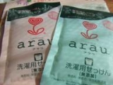 今日は、風が冷たいけど日差しがとっても暖かいです 本日のお届け物 araau(アラウ)洗濯用せっけんのサンプルです arau 無香料無着色保