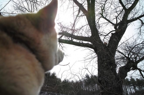 愛犬はなが木の上ののら猫とばったり遭遇★ お互い目が離せなくなって身動きが取れない様子です(笑)
