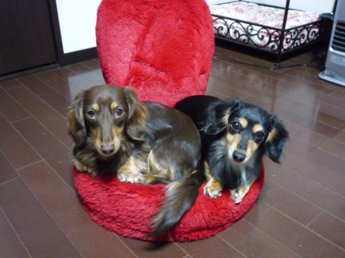 こんなちっちゃいイスにも2匹で仲良く座っちゃってるのを見つけてママ急いでカメラでパチリ♪ベストショットだね右がladyの樹璃ちゃんで左がメンズのココア君です