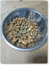 海藻ケルプには「カルシウム」「亜鉛」「ヨード」などの栄養素が沢山はいっています特に「ヨード」は甲状腺ホルモンを作る原料になる成分です新陳代謝、老化防止、ガン予防などに効果があると言われていますまた、最近ケルプの中に入っている「フコイダン」が注目されていますマウスに接種させた所、NK細胞(異物細胞や自己変異細胞を攻撃する)T細胞(リンパ球の一種骨髄で産生されウィルスなどを破壊する)働きが高まったという文献が出てきていますその他には、コレステロール血圧肝臓アレルギーに対する働きも期待されています海藻ケルプの使用方法とっても簡単レシピです① ベジタブルMIX(乾燥野菜)を水に入れて下さい② 1520分ほどで、ベジタブルMIXが戻ります③ 海藻ケルプとお好みの缶詰をドライフードにトッピング④ ドライフードと混ぜ合わせれば完成です♪ 海藻ケルプ、ベジタブル、缶詰を混ぜることで、より手作り食に近いホリスティックフードになります我が家では・・・フードにトッピングは、ほぼないので質素に(笑サプチメントは、こんな感じですよケルプとは?↑これですよ(ラッコがよく身体に巻きつけている画像がありますよね!それが海藻ケルプです)ラッコ・・・貝をたたいてるイメージのほうが強いのは私だけ?(笑◇保証成分値粗たん白質 40%以上粗脂肪 20%以上粗繊維 80%以下粗灰分水分 100%以下◇カロリー:242kcal/100g◇原産国 アイスランドケイナインキャビアさんは、収益の一部をCCCR(canine caviar研究募金)へ寄付しているそうですK9キャビアルポ モニプラ事業部ファンサイト参加中 続きを見る ['close']