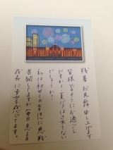 (専業主婦だから…)夏休み?は実家に帰って、地元の友達と遊びまくった!!!やっぱり都会はいいなぁ(o^^o)夏休みネタは、また今度…書こうかなwまずは残暑見舞い書いてみました♪このハガキ、口や足で筆を持って描かれたものなんです信じられます?どこか優しさが伝わってくる気が皆さんも大切な人に、残暑見舞い書いてはいかがですか? 続きを見る ['close']
